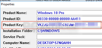 - La clé produit de Windows 10 est indiquée dans le champ Product Key. Notez-la. Elle vous permettra de réinstaller Windows 10.
