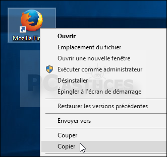 - Cliquez avec le bouton droit de la souris sur le raccourci vers le logiciel que vous souhaitez lancer au démarrage de Windows et cliquez sur Copier. Si le raccourci se trouve dans le menu Démarrer, faites-le glisser auparavant sur le Bureau puis copiez-le depuis le Bureau.
